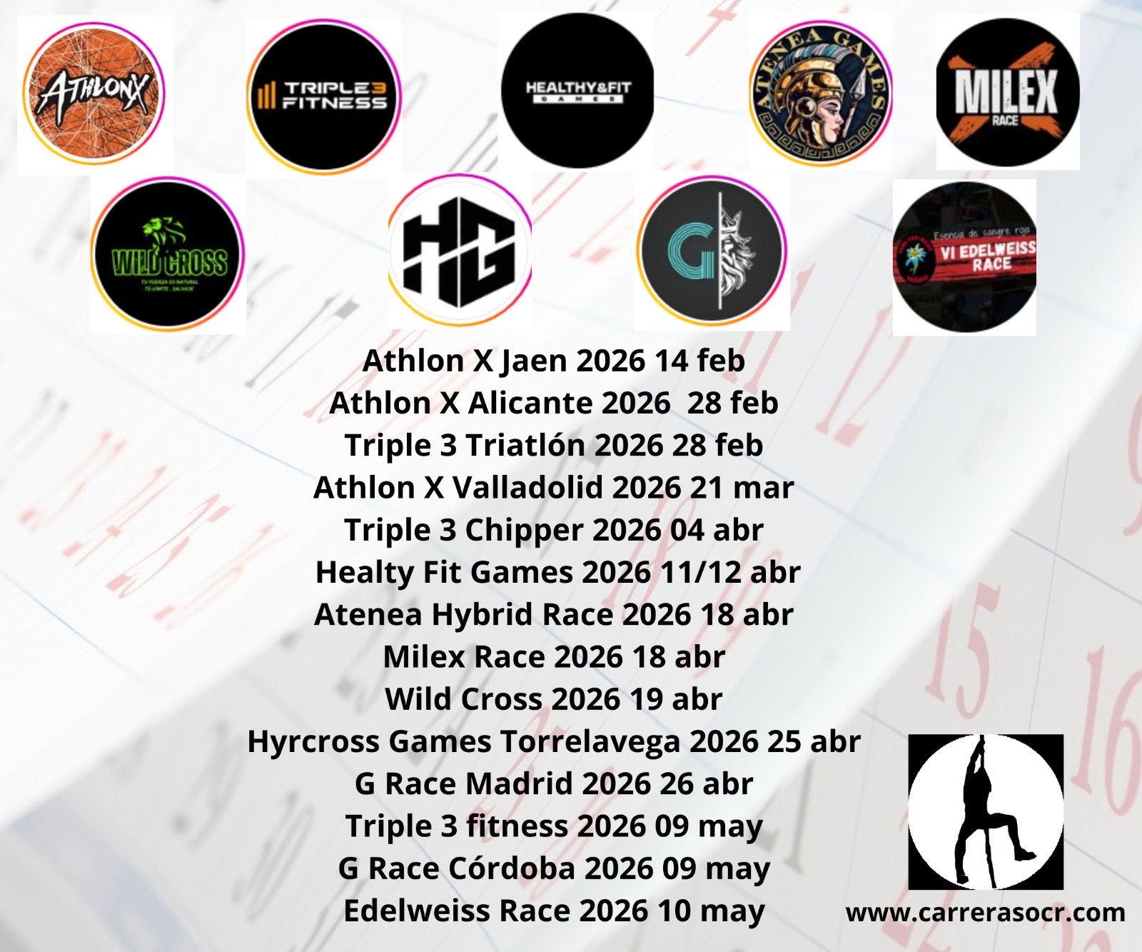 Desde OCR clásicas hasta eventos híbridos y pruebas extremas… 2026 promete ser el año más intenso de la historia 🏃‍♂️🏋️‍♂️