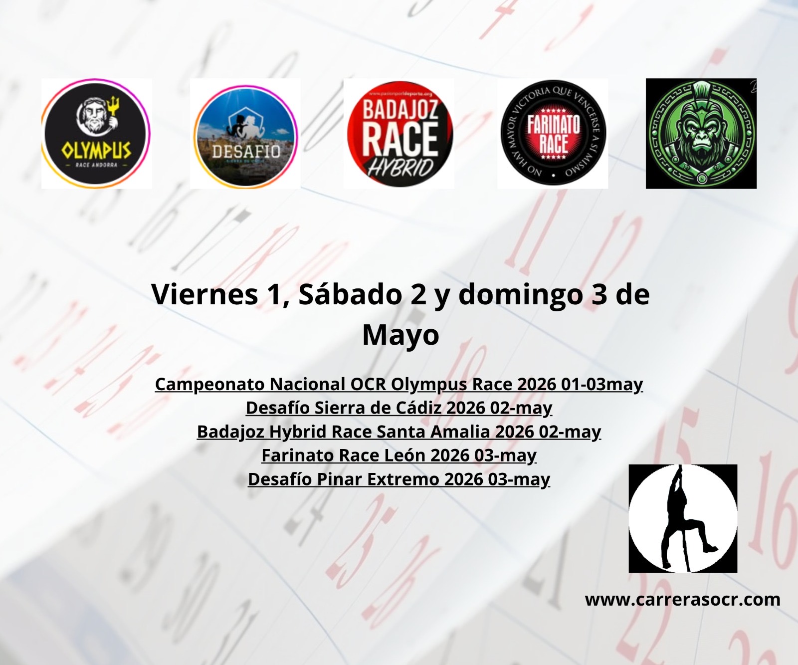 Tras un inicio espectacular, mayo sigue subiendo el nivel con pruebas nacionales de OCR y grandes eventos híbridos.